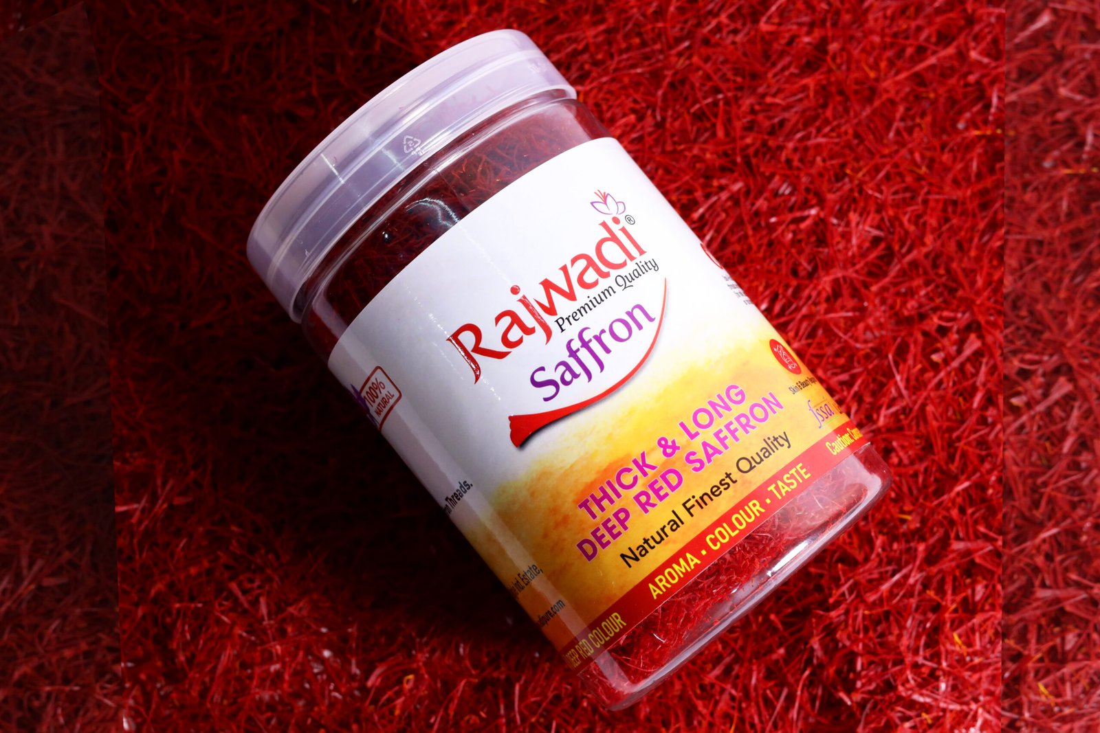 Buy Rajwadi Pure Kashmiri Saffron 50g Jar, a premium bulk pack of 100% original Grade A+ Kashmiri kesar. Featuring long, deep red threads with strong aroma and rich flavor, this saffron is ideal for sweet shops, restaurants, caterers, pooja suppliers, and wholesale buyers. Packed in an airtight jar to preserve freshness and purity.